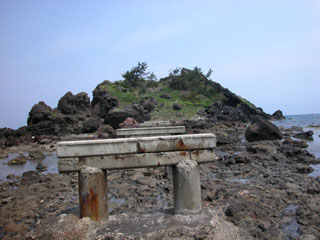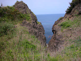 そして、火サス崖から高所恐怖症のふたりにとっては恐怖だったろう細い橋(下は岩の割れ目で海)を渡って(私自身
