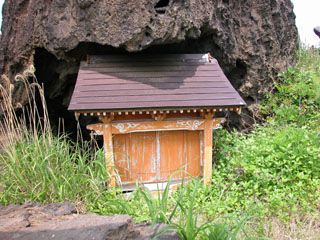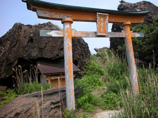 巨石に押しつぶされてるような、巨石を支えてるような不思議なたたずまいのお社でした。
